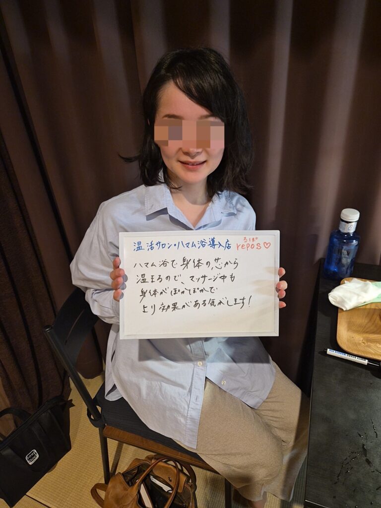 リピーター様✨ 2025.10.11 ご来店ありがとうございました😊✨ハマム浴+アロマトリートメント60分のコース♪ハマム浴でたっぷり汗をかき、スッキリサッパリした後に、アロママッサージでアロマの効能をお体に取り入れ、凝りにアプローチしていきました(^^)お体の状態は良い方でしたが、足裏と足首が凝っていたのと、足のリンパの流れが悪くなっていて少し張っていた印象でした😌1ヶ月に1度ご来店されるお客様ですが、仕事帰りに寄って頂き、疲労と凝り、睡眠の質など色々改善していけたらなと思います🥰