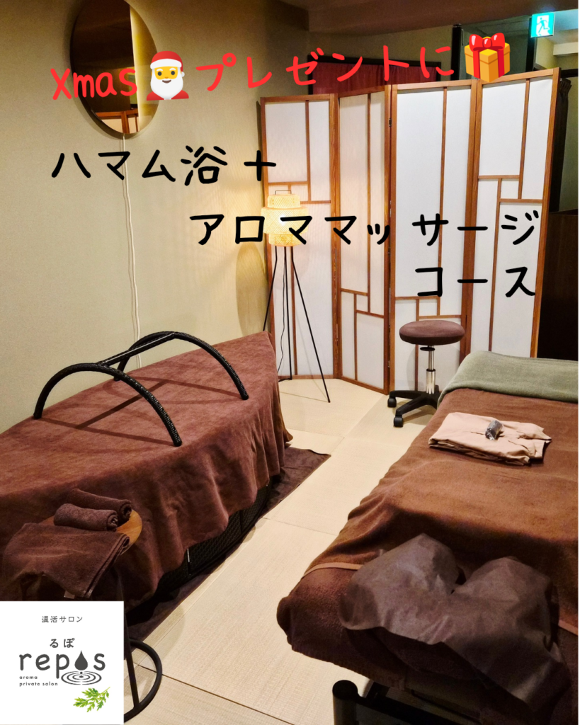 Xmasプレゼント🎁 2025.12.09 温活サロン✨repos🌿.∘Xmasももうすぐですね🎅女性専用のお店ですが、奥様や彼女さんにXmasプレゼントとして、温活サロンはいかがでしょうか?🎁男性からご予約頂けないnet予約もありますので、こちらのDMでのご予約を承っております(* ᴗ͈ˬᴗ͈)”ハマム浴+アロマトリートメントのコース。6,300円~♡JR関内駅から徒歩4分。地下鉄関内駅8番出口の目の前!!営業時間、11時~22時迄。不定休。